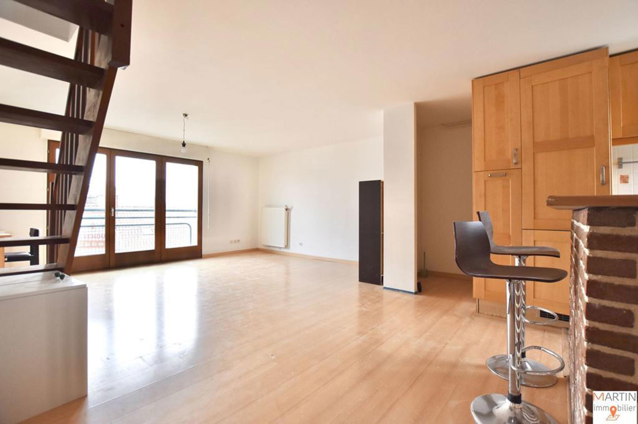 LOUÉ par MARTIN IMMOBILIER l'agence à honoraires réduits ! Rue Michel Ange à LILLE limite RONCHIN à proximité de la gare PORTE DE DOUAI, du métro, du jardin des plantes et de toutes les commodités, au 2ème et dernier étage d'une copropriété des année 90 au calme, appartement type 3 en duplex de 67,5 m2 loi carrez au calme entièrement parqueté offrant une pièce de vie de de 35 m2 avec séjour lumineux et cuisine équipée américaine, 2 chambres dont une avec mezzanine, 1 salle de bains, un wc séparé, une cave et une place de stationnement. Double vitrage et chauffage gaz individuel. www.martin-immobilier.fr