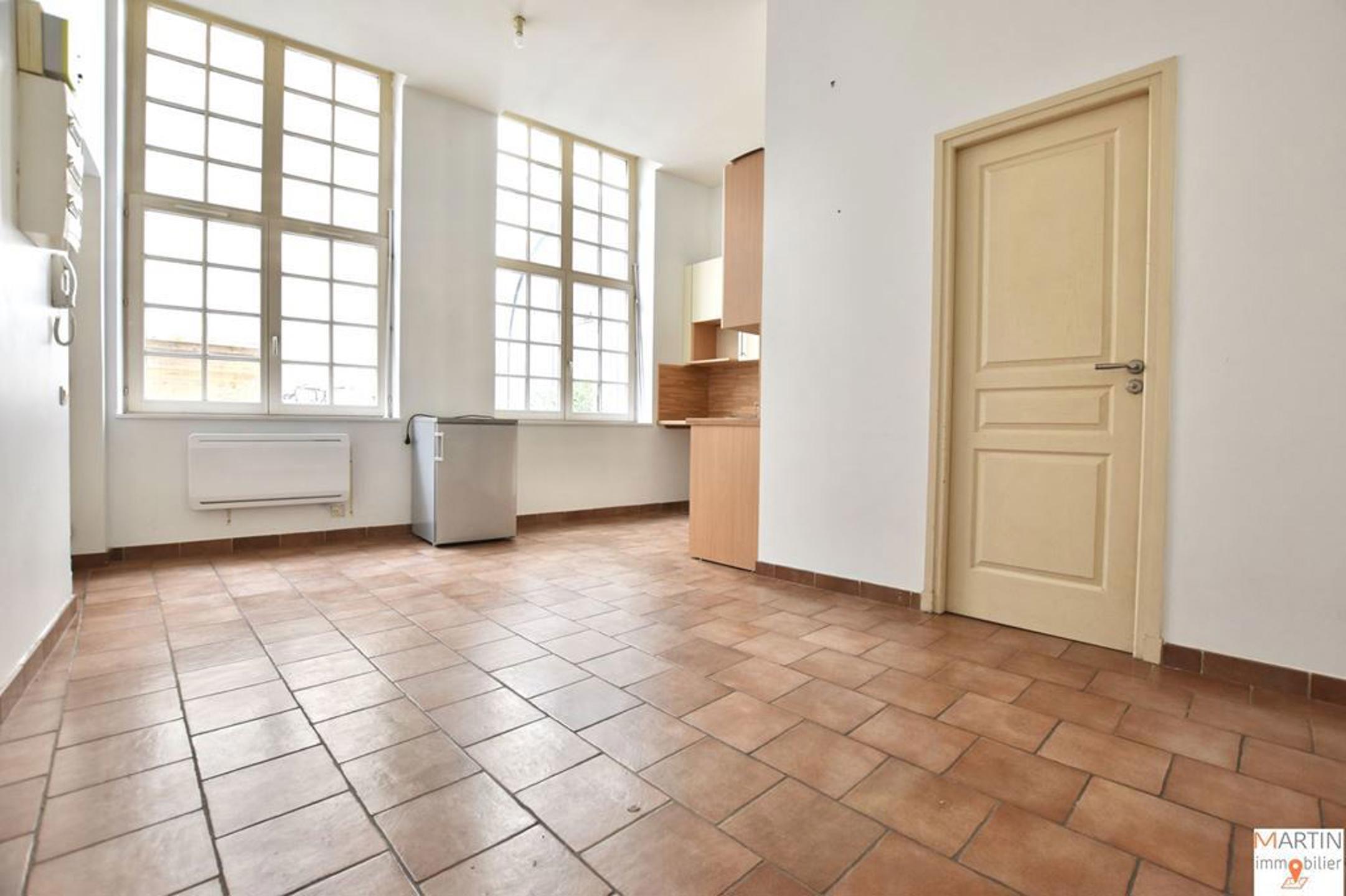 LOUE PAR L'AGENCE MARTIN IMMOBILIER, Rue Basse limite Rue Esquermoise dans le VIEUX LILLE à proximité de toutes les commodités, au rez-de-chaussée intérieur cour d'une petite copropriété au calme, charmant appartement type 3 de 47 m2 offrant une pièce de vie lumineuse avec séjour et une cuisine américaine, 2 chambres, une salle de douche, un wc séparé et une petite cour privative. Double vitrage et chauffage individuel électrique.