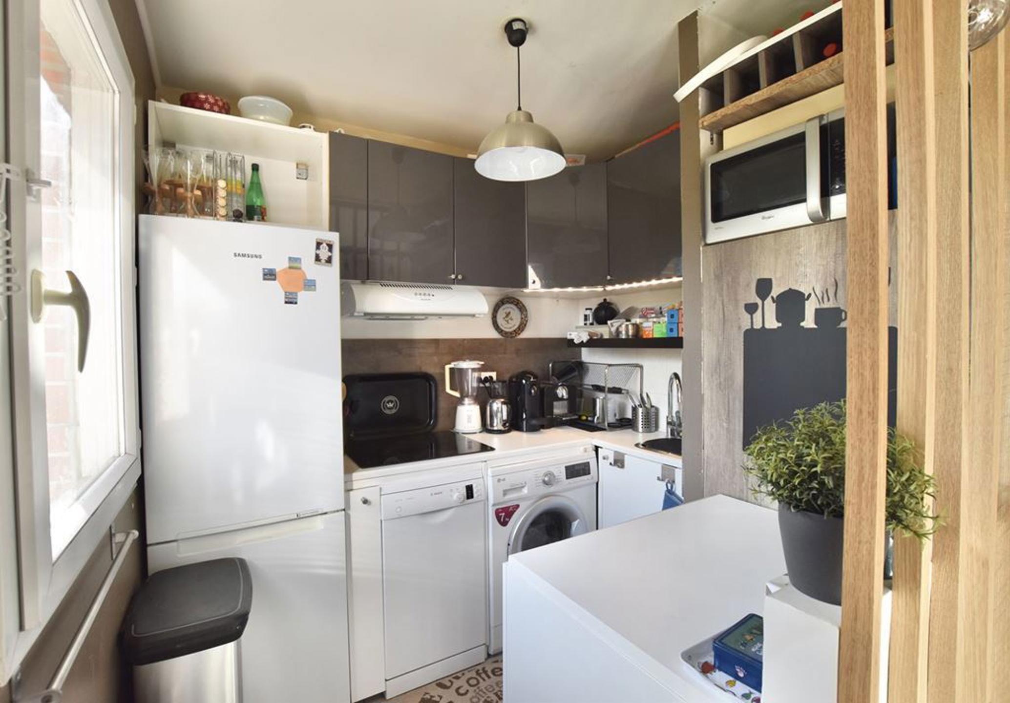 VENDU PAR L'AGENCE MARTIN IMMOBILIER, A WASQUEHAL limite MARCQ-EN-BAROEUL à proximité du tramway LA TERRASSE, du métro PAVÉ DE LILLE et de toutes les commodités, au 2ème étage avec ascenseur dans une résidence de 2006 calme sécurisée en copropriété avec parc arboré, type 2 de 44,11 m2 loi carrez avec balcon, une cave en sous-sol de la copropriété et une place de parking. Appartement offrant une belle entrée avec placards, une pièce de vie lumineuse d'environ 25 m2 avec un séjour donnant sur le balcon avec vue dégagée sur la verdure et une cuisine américaine, une chambre avec rangement et une salle de bains. Charges de 70 euros/mois (eau froide comprise).