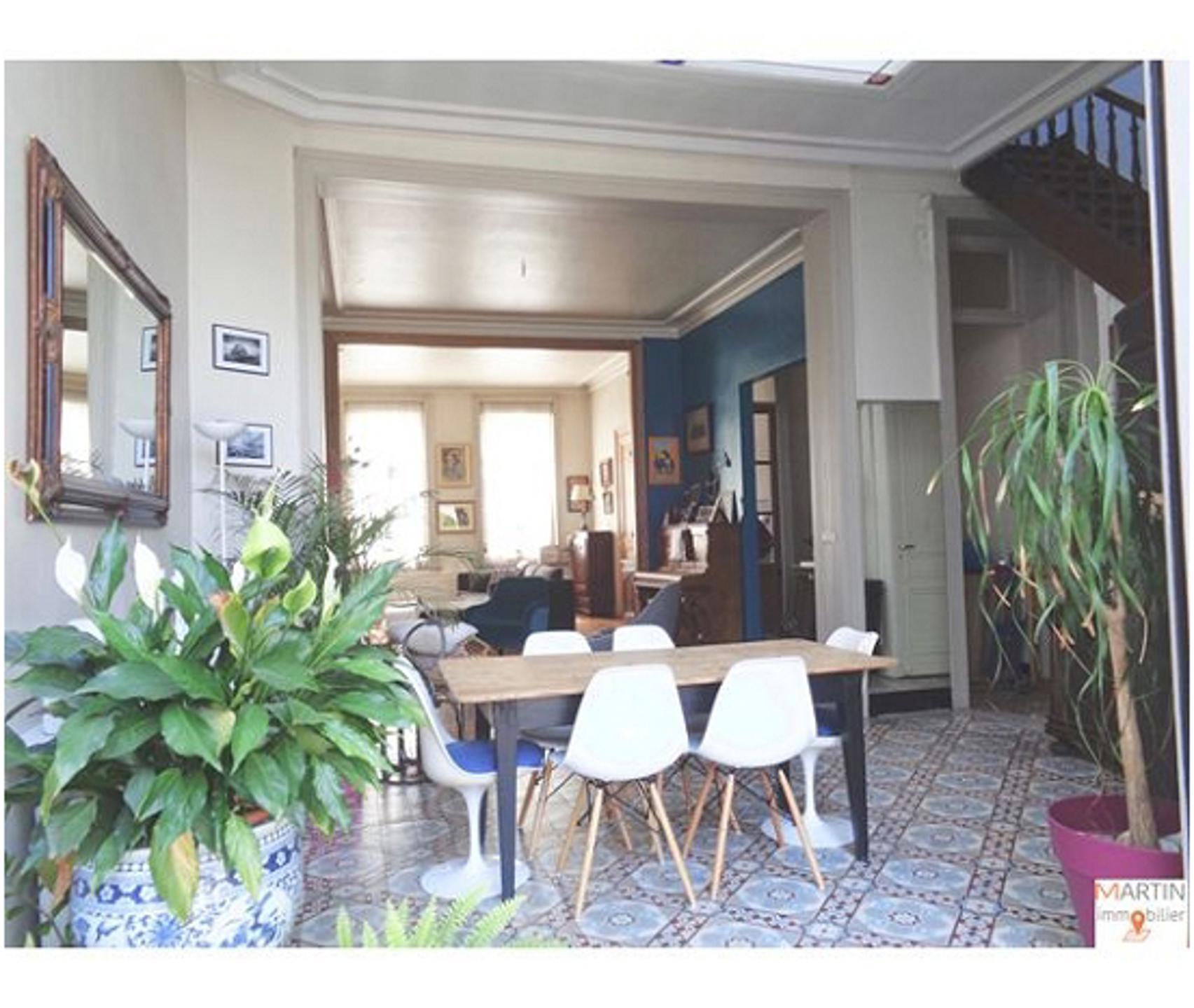 VENDU avec MARTIN IMMOBILIER l'agence à honoraires réduits ! Magnifique maison bourgeoise de 197,5 m2 à ROUBAIX quartier ALSACE limite TOURCOING à proximité des stations de métro Alsace et Mercure offrant une entrée, un salon/séjour lumineux d'environ 55 m2 avec parquet chevron, boiseries et cheminée feu de bois, une cuisine équipée d'environ 20 m2, 4 belles chambres, un grand dressing, une salle de jeux ou bureau, 2 salles de bain avec baignoire et douche, une cave de plus de 50 m2 et un jardin de ville sans vis à vis. Vous serez séduits par le charme de son cachet préservé.
