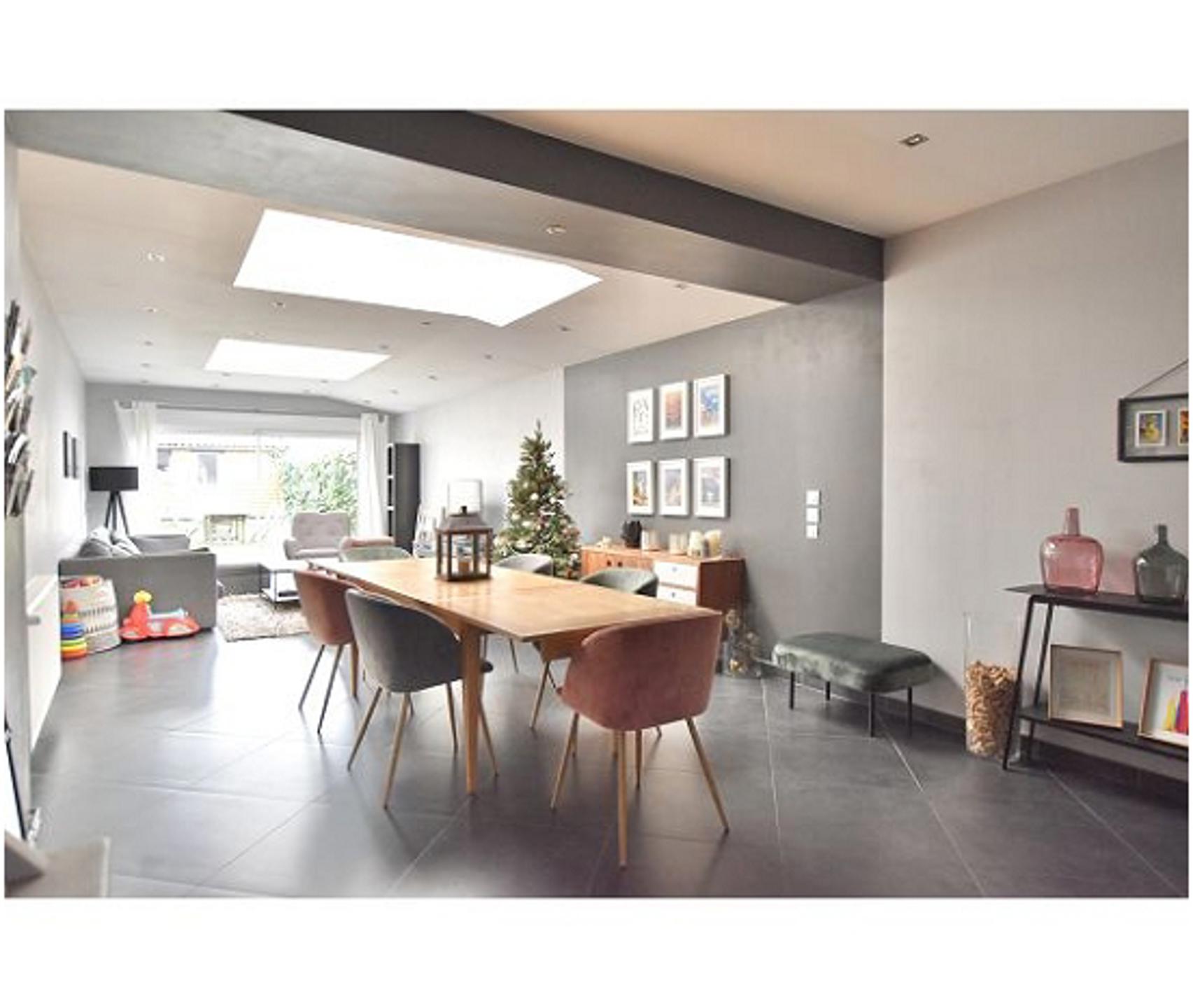 VENDU PAR L'AGENCE MARTIN IMMOBILIER, Au SART à VILLENEUVE D'ASCQ, jolie maison 1930 lumineuse entièrement rénovée d'environ 130 m2 située à proximité du tramway, du métro et de toutes les commodités offrant une entrée, une pièce à vivre de 64 m2 avec un salon/séjour donnant sur un jardin de 60 m2 avec abris de jardin et une cuisine américaine équipée avec accès à la cave, 3 belles chambres, un bureau et une salle de bains avec baignoire, douche et dressing.