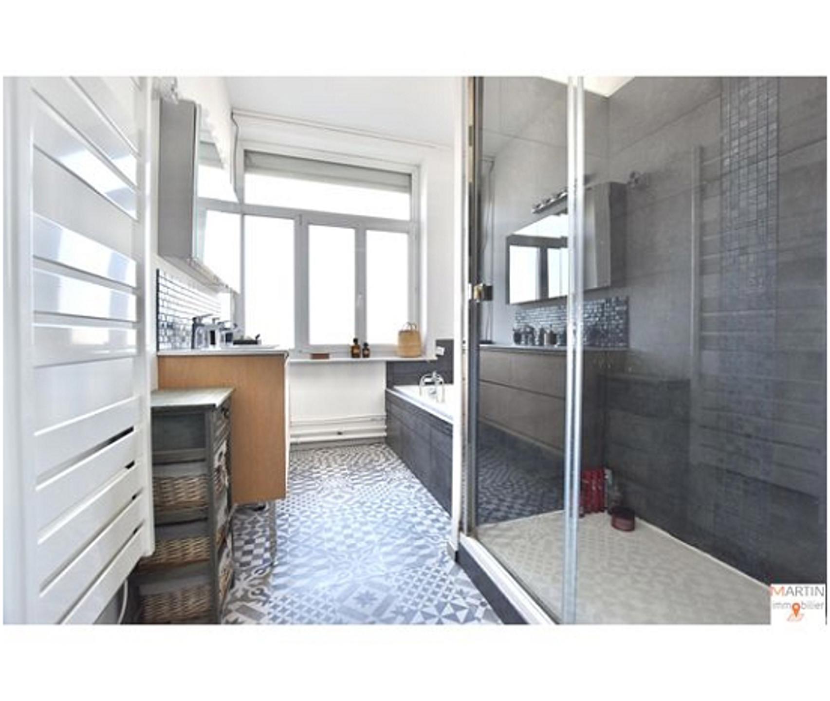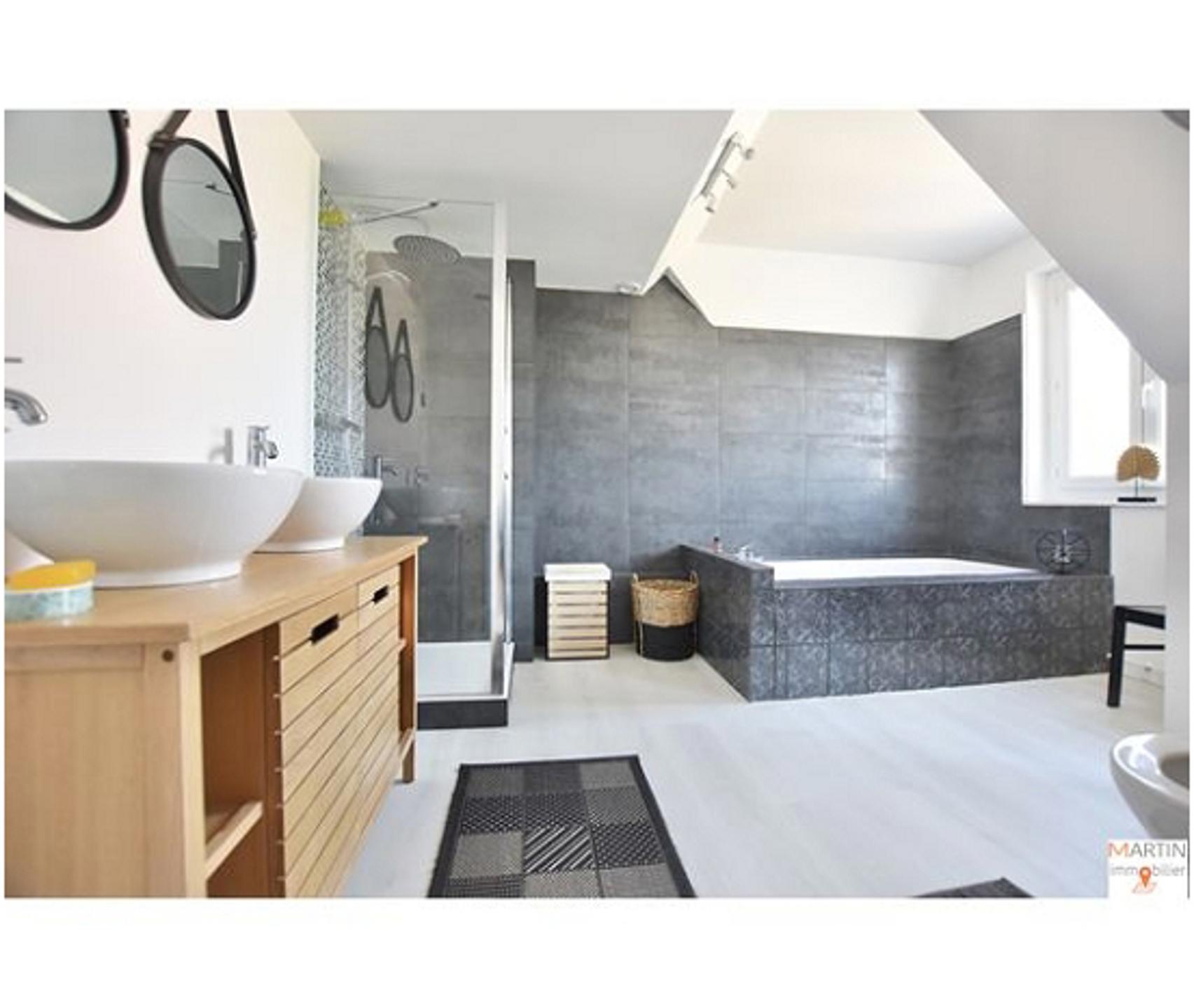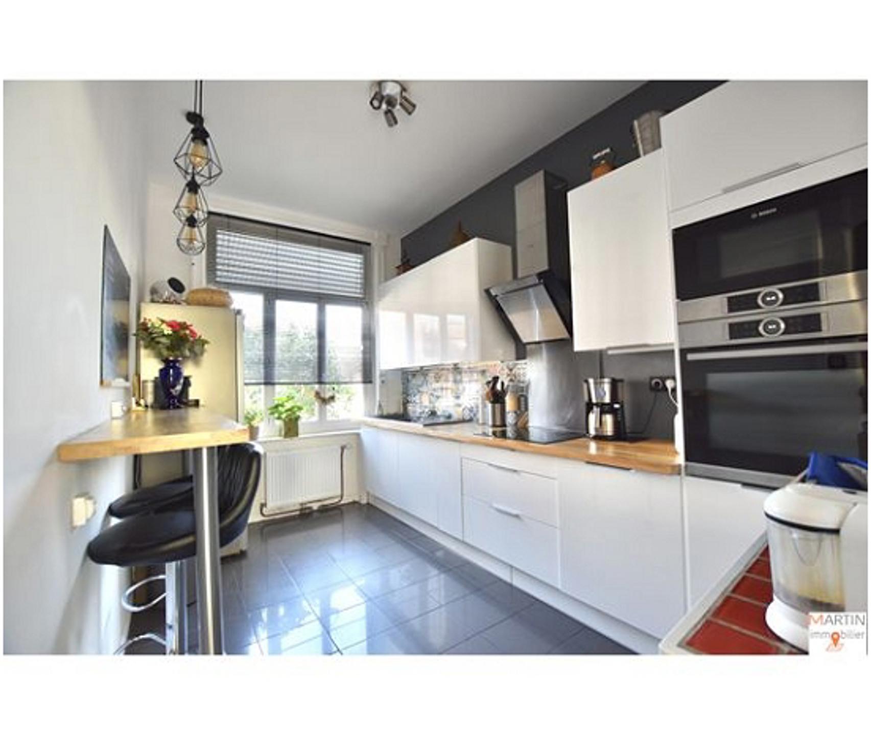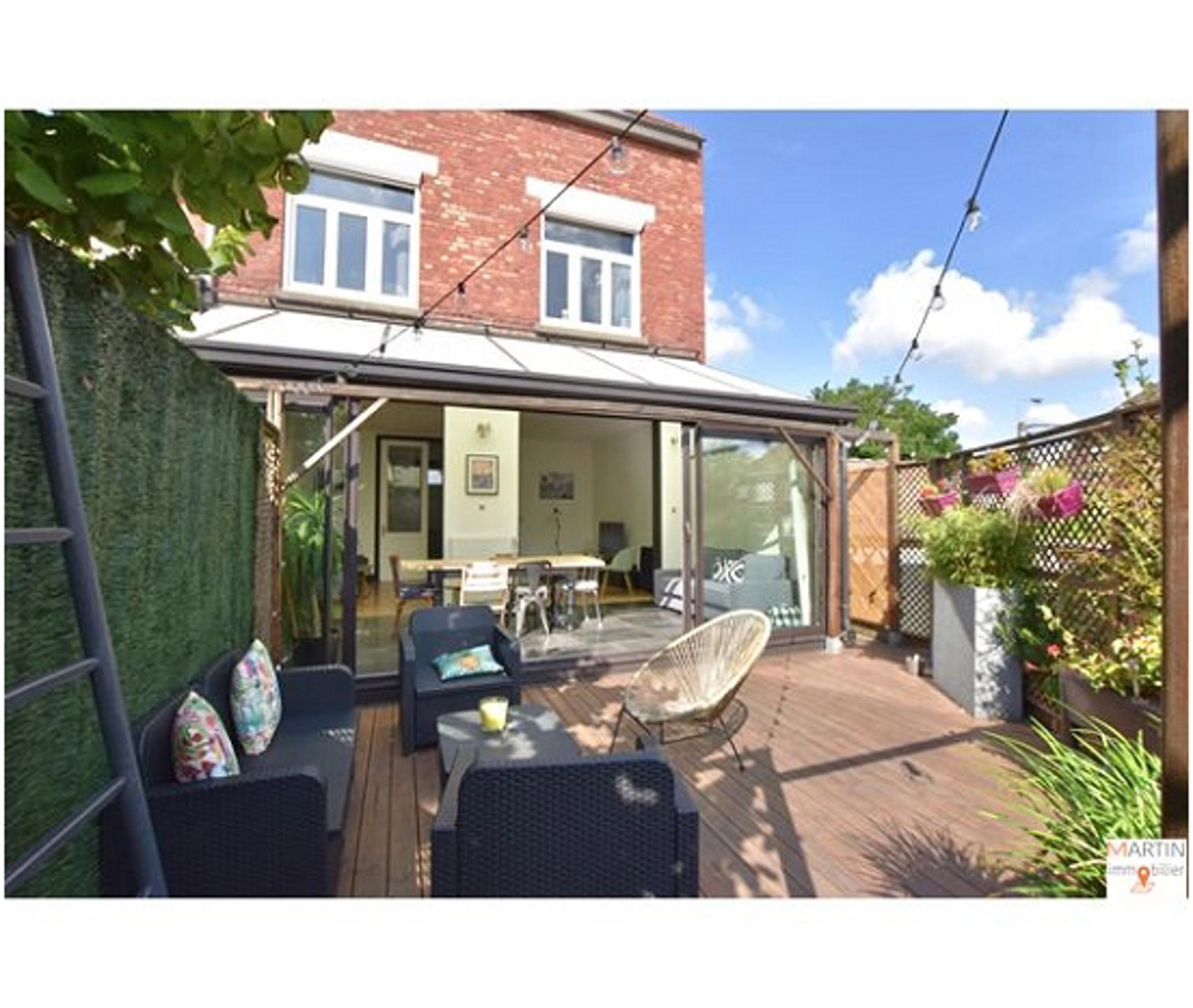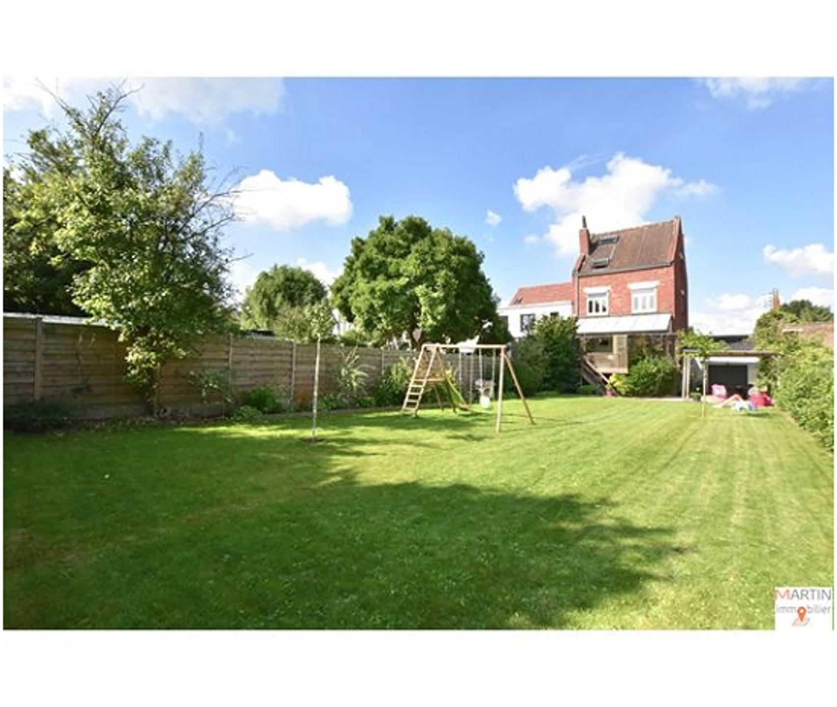 VENDU en exclusivité par MARTIN IMMOBILIER l'agence sur mesure à honoraires réduits !! Charmante maison de maître semi-mitoyenne d'environ 160 m2 habitable sur une parcelle de 670 m2 de terrain à HEM offrant un hall d'entré, un salon/séjour lumineux d'environ 45 m2 avec parquet chevron et poêle à bois, une cuisine équipée indépendante, 5 belles chambres dont un domaine parental, un bureau, 2 grandes salles de bains avec baignoire et douche, un jardin spacieux avec 2 terrasses dont une suspendue, un sous-sol, un garage traversant de 50 m2. Aucun travaux à prévoir.